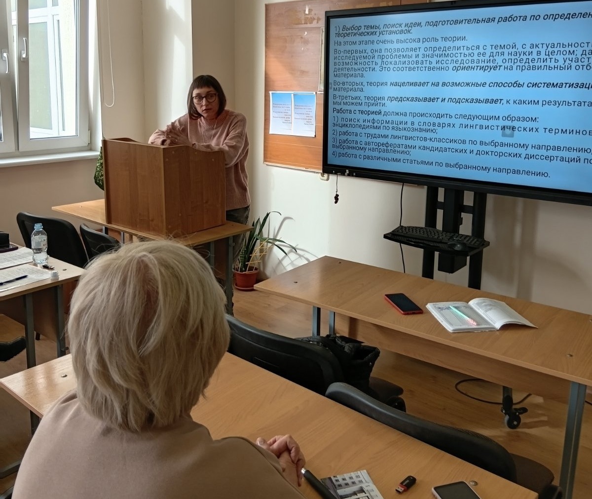 Вопросы теории и методики написания научных работ раскрыли декан лингвистического факультета, кандидат педагогических наук Т.М. Пучинская, доктор филологических наук, профессор Е.И Белая, кандидат филологических наук, доцент Е.А. Зуева, старший преподаватель Н.В. Ермалович и студентка 4 курса А. Воробей.
